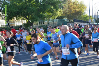 Y se dio el pistoletazo, Diego impuso un gran ritmo de salida, y ya no sabría nada de él hasta la llegada, Paco decidió adelantarse un poco, y yo me quedé en un grupo en el que se llevaba un buen ritmo para mis pretensiones. Carlos y Dani adoptarían estrategias similares. Las carreras de fondo suelen tener poca interacción entre los compañeros del club, a diferencia de carreras más cortas donde se adelantan unos a otros y es más divertido. En una carrera de este tipo, lo principal, es elegir un ritmo que te permita no desfallecer, elección que parece sencilla pero a la vez resulta muy complicada de ejecutar. De ahí el dicho de "la soledad del corredor de fondo", que en esta carrera se puso en evidencia, pues cada uno se conoce, sabe su ritmo, su forma de correr, provocando que la carrera sea para cada uno un "intramundo" particular, siendo bastante independiente el devenir en la carrera para cada uno de nosotros.